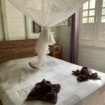 Votre location meublée en Martinique, de style créole meublée à l’orientale, vous invite au dépaysement total. Deux chambres climatisées avec lit 160 et moustiquaires Un cinquième couchage ( lit 90 ) sur une mezzanine non climatisée et avec moustiquaire. Deux salles d’eau avec douche, lavabo et toilettes. Une cuisine équipée avec mini four, four micro-onde,cafetière bouilloire et frigo Un coin salon avec TV. Une terrasse avec salon en teck. Un lave linge et un sèche linge sont à disposition dans le local piscine gratuitement Le linge est fourni ( Draps, serviettes et torchons ) et est changé tous les 7 jours.